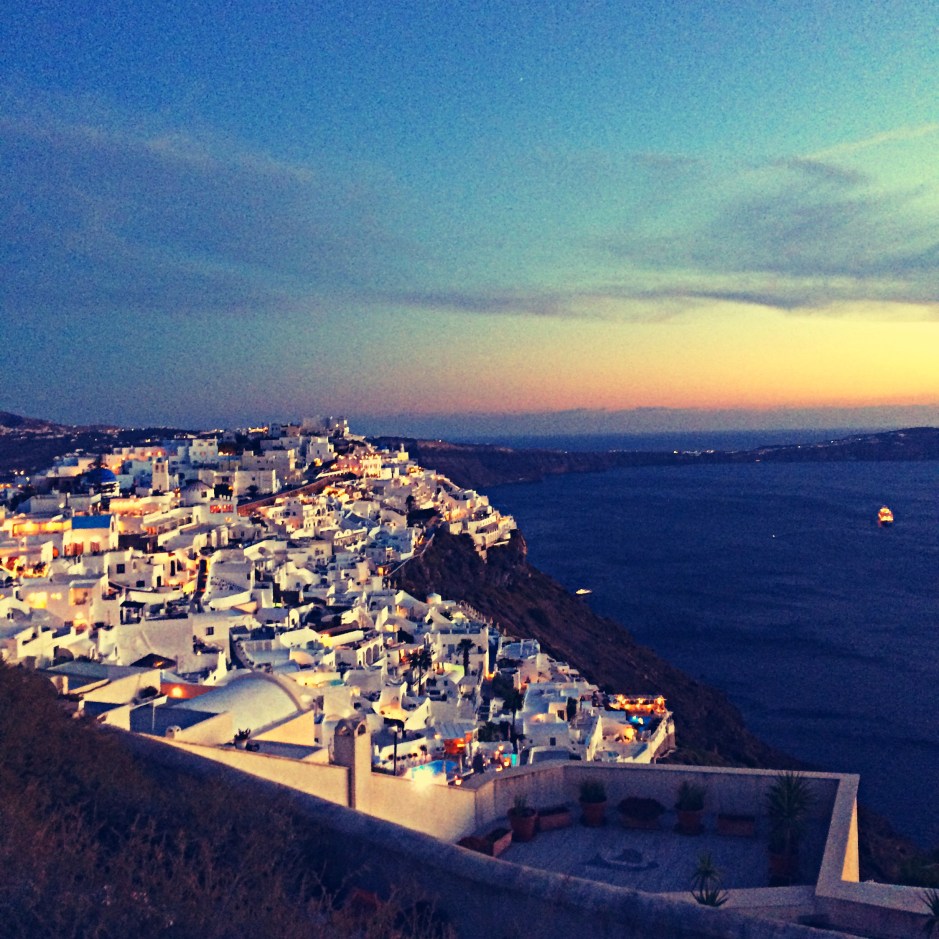 breathtaking! Clean white buildings, royal blue domes and doors, and beautiful flowers overlooking a perfect view of the caldera and Aegean Sea. Side note – being that everything is white, you better have good sunglasses otherwise you won’t see anything since the sun reflects off them all pretty harshly. Most people go to Oia for sunset, however, in our opinion (which we adopted from the locals), the sunset is just as gorgeous from Fira, and I’m sure many other places in Santorini. Oia DOES get extremely crowded however. It’s often the first stop that tourists coming off the cruises make a beeline for….sometimes there can be 3-5 cruise liners anchored a day, which means up to 80,000 visitors a day, making the Santorini port one of the busiest in the world. We aren’t much for crowds, and Oia turned out to be super expensive, so we opted to do a morning trip and spent a few hours walking around, taking in the sights, and snapping photos before we moved on to Amoudi Bay. Be sure to check out the Castle of Oia,